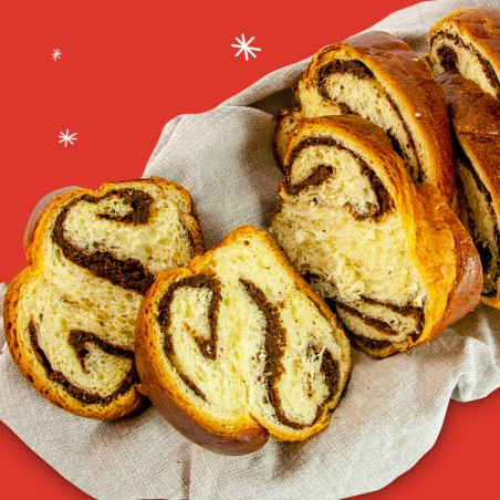Cozonacul Gustul Copilariei ce contine aluat de cozonac cu maia, impletit cu umplutura de nuca si mai multa cacao, aromat cu rom, coaja de lamaie si vanilie, are gustul binecunoscut al cozonacilor facuti de bunicile noastre in copilarie. Perfect pentru cei care isi doresc sa aduca pe masa un cozonac asa cum mancau cand erau mici!