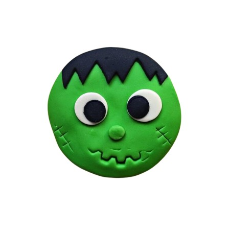 Turta dulce Monstrulet Frankenstein de Halloween contine aluat copt cu miere, cu muullta scortisoara, cacao si aroma de rom, invelita in glazura.
